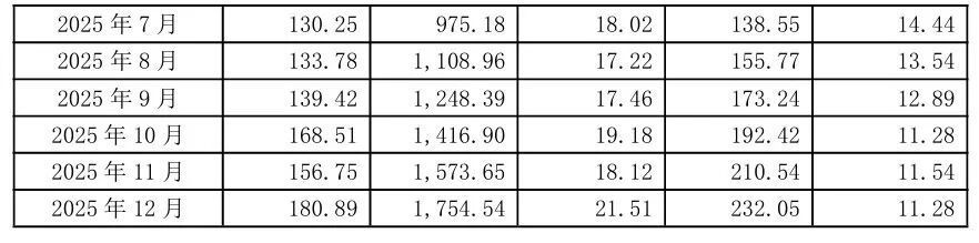 新希望(000876)1月6日公告,公司2025年12月销售生猪180.89万头,环比变动15.40%,同比变动13.66%。收入21.51亿元,环比变动18.71%,同比变动-10.75%。商品猪销售均价11.28元/公斤,环比变动-2.25%,同比变动-27.27%。